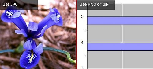 这里有个选择适合的文件格式的技巧:如果图片是单色,那最好保存成PNG或者GIF格式;如果是连续性的色调(如照片)则最好保存成 JPG格式。